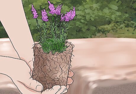 Cover the flowers with netting overnight to block out cats entirely. Lay the netting so that it completely covers the flower bed. Insert stakes through each corner of the net and hammer them down to hold the net in place. Cats often prowl around neighborhoods at night, so placing a piece of netting over your flowers may solve the problem.Tip: Garden netting lets in enough sunlight that you could leave it on during the day too, but it will prevent you from seeing your flowers. Remember to take the netting off during the day to make your flowers visible again.