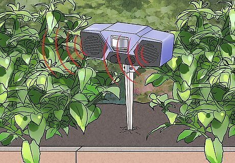 Plug in an ultrasonic device near the flower beds to create a sound barrier. Cats can hear different frequencies than humans can, so an ultrasonic device may also help to keep them at bay. Plug in the device in your garden or as close to the flower bed as you can get it. You can purchase these devices at hardware stores or online. The device will not harm the cat! It just creates a sound that the cat will find annoying or frightening.