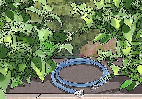Lay a garden hose among the flowers to make cats think there's a snake. Cats are often afraid of snakes by instinct. Laying a garden hose in and around a flower bed may trick a cat into thinking there is a snake. Get a small garden hose and lay it in and around the flowers. For something even scarier, try getting a fake plastic snake to put in your flower bed! Place it on the edge of the bed so cats will see it right away.