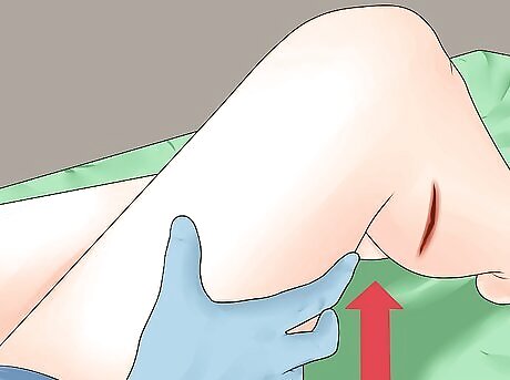 Elevate the wound. If it still doesn't stop, try elevating the wound. Elevating the wound just means to get it above the person's heart. That way, blood has to travel against gravity to get to the wound. This lessens the amount of blood at the site, making it easier for the body to stop the bleeding. If you think the person may have a broken bone near the cut, you don't want to move that part of the body, as it can make the fracture and surrounding structure worse. You may need to skip this step if you think that's a possibility. If it simply won't stop bleeding, even if it's minor, call 911 or visit an emergency room.