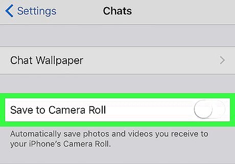 Slide the “Save to Camera Roll” switch to the “Off” position. When the switch turns gray, WhatsApp will no longer save incoming photos and videos to your device.