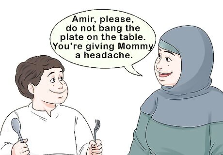 Model how to communicate your feelings. You might yell because your kids are irritating or annoying you and you wait until they’re driven you up a wall before saying anything. Start voicing your feelings and needs more often to minimize angry episodes. For instance, say, “Tony, please, do not bang the plate on the table. You’re giving Mommy a headache.” Stating the problem and your expectation helps the child know what to do, whereas shouting only confuses and upsets them. By being a better communicator, you’ll teach your kids to voice their own needs more effectively, with you and others.