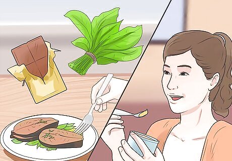 Eat a well-rounded diet. Vitamin D and B12 deficiencies are often thought to cause eye twitching. Although there is no hard evidence, a magnesium deficiency is also thought to be a contributing factor. To up your intake of Vitamin D eat fish, oysters and dairy. For Vitamin B12, eat more fish, lamb, crab, and beef. For magnesium, eat yogurt, fish, avocado, nuts, soybeans, dark chocolate, bananas, and dark leafy greens like kale, collard greens, spinach, or chard.