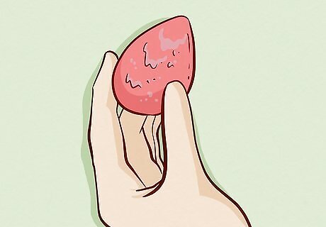 Get your blending sponge or brush damp. You should always work with damp tools when applying foundation. This is especially important in the winter when your face is drier. Whether you're using a sponge or a bush, make sure to get it a little damp before applying your foundation. EXPERT TIP Daniel Vann Daniel Vann Licensed Aesthetician Daniel Vann is the Creative Director for Daredevil Cosmetics, a makeup studio in the Seattle Area. He has been working in the cosmetics industry for over 15 years and is currently a licensed aesthetician and makeup educator. Daniel Vann Daniel Vann Licensed Aesthetician Wet your skin before applying foundation. Daniel Vann, a licensed aesthetician, says: “The most common reason foundation looks cakey is a misapplication of the product. If you’re putting too much foundation on and you’re not wetting your skin, it’s going to turn out cakey. You need to thin the foundation out, or it will bunch up, and the pigment will act weird.”