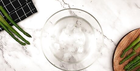 Boil water and prepare an ice bath. In order to retain its flavor, asparagus should be blanched before freezing. This is the process of boiling the asparagus for about 30 seconds and removing it from heat before it loses its crunch. The asparagus is plunged into ice water to stop it from cooking. Boil a large pot of water and prepare a large bowl of ice water.