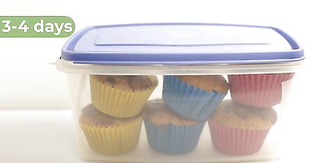 Place wrapped cupcakes in an airtight bag or container. A gallon-sized airtight plastic bag works just fine for unfrosted cupcakes. For frosted cupcakes, it's better to use an airtight glass or plastic container to minimize damage to the frosting. Write the date on the bag or container to remind your future self of when you baked these.