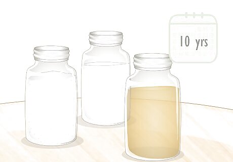 Store condiments such as salt, sugar, honey, and stock for 10 years. Condiments can considerably improve the flavor of food that's been stored away for a long time. Salt and sugar are two basics that last up to 10 years in a sealed container. Instant coffee can also last up to a decade and can provide a caffeine fix in an emergency. Honey can last for hundreds of years. Spices are most flavorful within 6-12 months, but are safe to eat for up to 4 years.