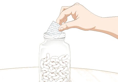 Use oxygen absorbers to help sealed food last longer. Oxygen absorbers come in small packets that you can place into a resealable container of food. Place 1-2 packets in each resealable jar of food to keep it fresher for longer. You can buy oxygen absorbers for food storage at big box stores and online. Mason jars are a good choice for long-term storage. You can tape oxygen absorbers to the lid before sealing your food inside. These absorb any oxygen left in an airtight container, which kills pests and bacteria that could cause your food to go bad.
