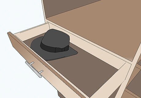 Use drawer inserts to keep your hats in a dresser. Inserts break up space in the drawer and keep your hats from being crushed by other objects. This is a great option for more fragile hats or hats with decorations, but you can also store casual hats like baseball caps this way.