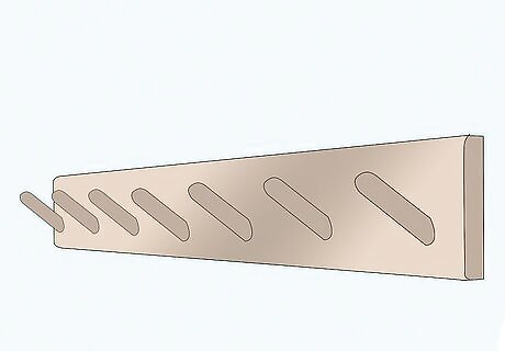 Space the pegs according to hat size. Don’t put the pegs too close together, or your hats won’t have room! How much space to give each peg will depend on your average hat size. If you mostly wear baseball caps or fedoras, you’ll need about 1 foot (0.30 m) between each peg, but wide-brimmed hats will require more space. Make sure your pegs are level with each other! Use a leveler if you aren’t sure.