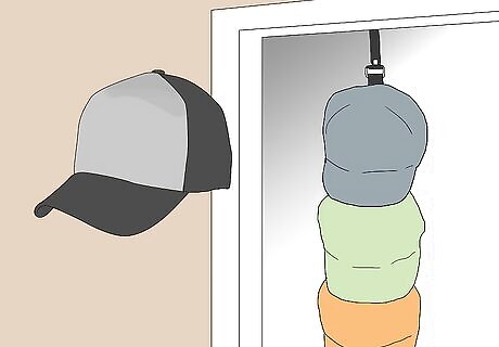 Use an over-the-door hanger for baseball caps. You can put these on the inside of your closet or bedroom door to maximize space. This wouldn't work well for larger hats, but baseball caps are more flexible.