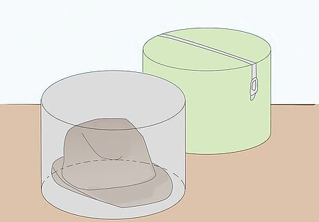 Buy hatboxes that fit your largest hat. It’s easier to store boxes if they’re all one size, so your hatboxes should be sized to your largest hat. Hatboxes are traditionally round, but they don’t have to be. All they really need to have is a lid. You can buy hatboxes at department stores, craft stores, and specialty clothing shops. You don't need to buy actual hatboxes if you don't want to. Wide shoeboxes or even clear plastic boxes would also work well.