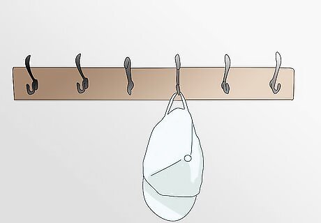 Hang each hat on its own peg. You can double up hats on one peg if you want, but it’s best for each hat to have its own peg to prevent damage and clutter.