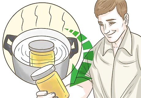 Liquify honey that has crystallized. Over time raw honey will crystallize. It is still edible but some people do not like the texture of the granules. To remove the granules, place the jar of honey in a pot of hot water (not on an element) and leave it until the honey has liquified and all the granules are gone. The granules will return eventually, simply repeat the heating process each time to remove the granules. Be sure to heat the honey in a glass jar, not a plastic one.