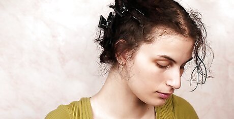 Maintain straight hair. After you have gone through all of that trouble to straighten your hair, you probably want to maintain it as long as possible. To keep from damaging your hair, try to avoid completely re-straightening it every day. Go about three days and then repeat the process over again for straight hair. To maintain straight hair you can follow these steps: Use dry shampoo when it starts getting oily. If you want to wear your hair straight for a few days without having to wash it and repeat the process, apply dry shampoo to your roots when they start to look oily. You can also use baby powder to remove any oil or shine. Avoid getting your hair wet. Because curly hair will easily kink back up if exposed to water, try to avoid humidity or water. When taking a shower, pin your hair up with clips and then wrap it in a towel or shower cap to keep excess humidity out. Touch it up every so often. If you are wearing your hair straight for a few days, it's likely going to frizz up a little bit and it may begin to shape back into curls. To prevent this from happening, run a straightener through your hair every day or so, focusing on the problem areas. You don't need to completely straighten all of your hair or pin it up in sections -- just straighten the top layer or any pieces that are starting to curl. Continue to apply serum to your hair. Serum can help smooth hair and will prevent extra frizziness. Every day after you straighten your hair, or when you wake up, apply serum to your hair. Then, spritz your roots with a light hairspray to prevent flyaways. Secure your hair at night to prevent it from becoming tangled or misshapen as you sleep. You can put it in a loose bun or wrap style for best results. You may also want to wear a silk scarf over it. Pin your hair back on the last day. If your hair is looking really oily, you can use the last day as an opportunity to wear it in a cute undo. You can also just wear a headband or pin back your front pieces as those are probably the ones that have acquired the most moisture and oils throughout the day.