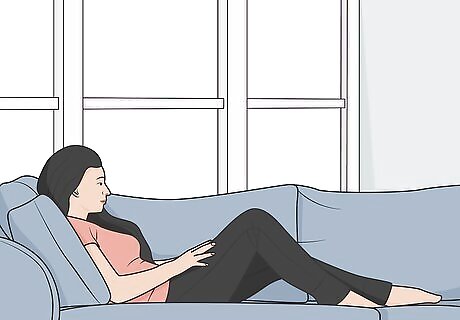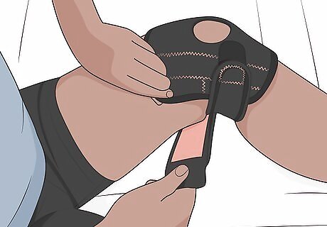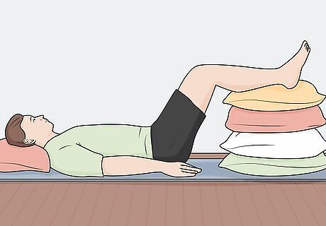 Elevate your knee to prevent swelling and speed up your recovery. Use pillows or blankets to prop up your leg whenever you're sitting down. Prop your knee up high enough so that it's above your heart, meaning it's elevated the right amount. You can also use a chair or your bed to help you elevate your knee.