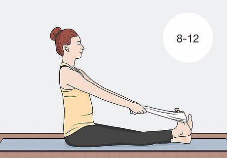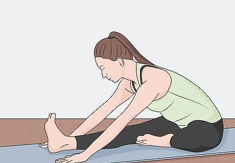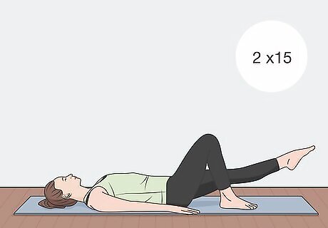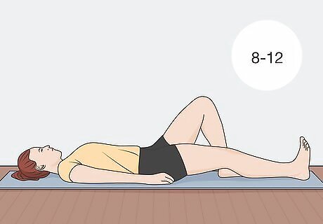Strengthen your knee by doing heel slides. Sit on the floor so that your knees are bent and your feet are flat on the ground. Slide the heel of your sprained knee back towards your bottom while still keeping your foot flat so you feel the stretch properly. Move it slowly as close to your bottom as possible before you slide it back to the starting position. Repeat this exercise 8-12 times to help strengthen and stretch your knee. You can also lie on your back and do this stretch against a wall, if you'd like.