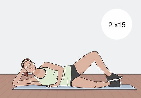 Do a clam exercise for a slow and gentle stretch. Lie on your side that isn’t injured and bend your knees. Keep your feet together as you move your sprained knee towards the ceiling, opening up your legs like a clam. Once you’ve lifted your leg as far up as possible while still keeping your heels together, slowly lower your leg back down and start over. Do 2 sets of 15 to help your sprained knee.