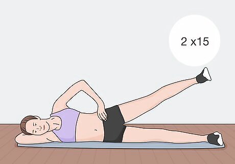 Try a side-lying leg lift to stretch your knee while fully extending it. Lay down on your side that isn’t injured and lift your injured leg up into the air so it’s roughly 8–10 in (20–25 cm) away from your other leg. Tighten your leg muscles as you do this to really work the stretch and then slowly lower your leg. Do 2 sets of 15 of this stretch.