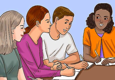 Invite other students to join you in a study group. When studying for a test, try getting a few other classmates to join you at someone’s house or the school library. You and the other group members can ask each other questions about the course content, refer to each other’s notes, and help jog one another’s memories regarding names, dates, and facts. Or, pull out your notecards and review them with your classmates. Many group-study sessions become little more than a social hour. Avoid this by keeping the members of your group focused on studying history.