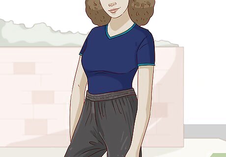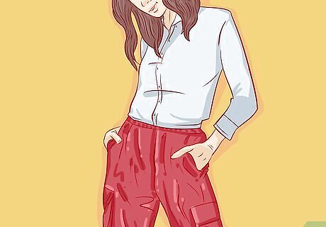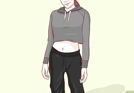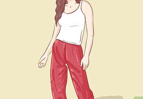 Use a cropped tank top to keep cool in the summer. Throw on a spaghetti-strap tank top that stops just above your natural waistline to hug your curves. A cropped tank will also provide a nice contrast from the larger, more oversized pants in your outfit. Put on a white tank top, red windbreaker pants, and a baseball hat for a cute summer outfit.