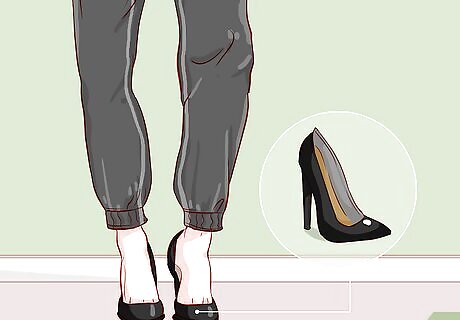 Pair your pants with some skinny heels for a night out. Windbreaker pants don’t have to be worn during the day. Throw on some black stiletto heels to elevate your outfit enough for a night out. Wear some black windbreaker pants with white stripes down the side, black heels, and a white crop top to take your outfit to a club.