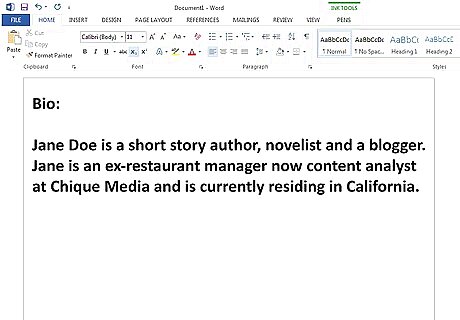 Write a brief bio about yourself. In case your submission is chosen, the editors may want to include a short bio about you, about 3 sentences long. To prevent them from having to do more work by asking you for a bio once they are ready to publish, furnish them with one in your cover letter. Keep this bio about your work, not your likes and dislikes. You may want to list where you live, work, and where else you have been published. If you've never been published, focus on your experience and education.