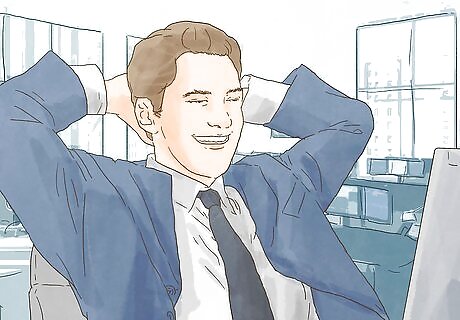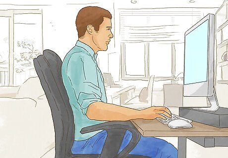 Get comfortable at your desk. Sit at your desk with a good posture, not slumped back or bending over your keyboard. Arrange your devices so you can access them easily. Also be sure to have everything you need at your desk, such as calling lists and a bottle of water. This way you shouldn’t need to get up until your break time.