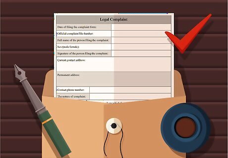 File the complaint. Once you have completed the complaint, then make several copies. Take the original (and your copies) to the court clerk. Ask the clerk to file the original. The clerk should stamp your copies with the filing date. You will probably have to pay a filing fee. Ask the clerk for the amount and acceptable methods of filing.