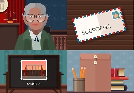 Prepare for trial. Your lawyer can help pull everything together as your trial date approaches. However, if you don’t have a lawyer, then you need to do all of the prep work. You should prepare by doing the following: Identify your witnesses. You usually have to give the school a list of witnesses you intend to call at trial. You should sit down and identify who has helpful information for your case. Identify people who saw your child get injured or saw the hazard. Remember that witnesses can only testify as to what they observed personally. They can’t testify to gossip or speculation. Serve subpoenas on your witnesses. A subpoena is a legal request for a person to show up at court and offer testimony. You can generally get a blank subpoena form from your court clerk. You will need to fill it out and arrange service on the witness. Make sure to serve the subpoena with plenty of time before the trial. Make exhibits. You will definitely want to introduce helpful documents into evidence a trial. For example, you should introduce pictures of the hazard, as well as medical reports and receipts for medical expenses. You can turn a document into an exhibit by attaching an “exhibit sticker” to the document. Get these stickers from the court clerk or from an office supply store. Make multiple copies of your exhibits. Ask the clerk how many copies to make. Generally, you need to give the other side a set of all documents before the first day of trial.