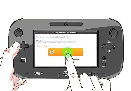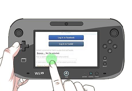 Go to the screen you want to capture. You can take a screenshot of most games and apps on your Wii U and share it on Twitter, Facebook, or Tumblr. Some apps (such as Netflix) don't allow screenshots.