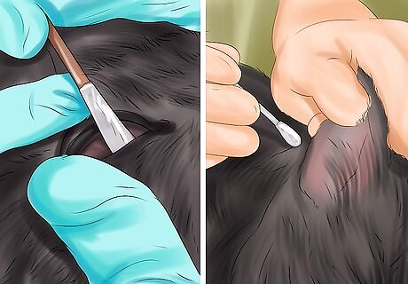 Swab the cat’s ears and eyes. Although Selkirk rexes are not especially susceptible to eye and ear diseases, the eyes and ears will still need occasional cleaning. Daily, wipe the corners of the cat’s eyes to remove any excess fluid. At least once a week, look into your cat’s ears. Dirt and wax can accumulate inside the fold of the ear. If you notice an accumulation, wipe this out with a cotton ball. You can dab your cats eyes and wipe out their ears using a cotton ball. Do not put a cotton swab in your cat’s ear; a cat’s ear canal is much larger than a human’s, and a cotton swab could cause damage.