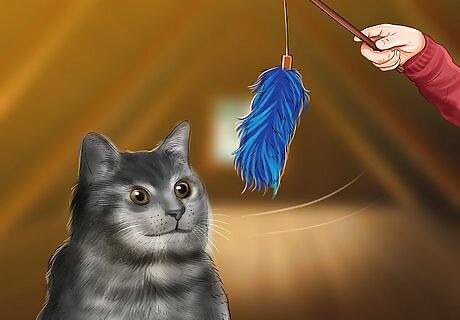 Play and interact with your cat. Selkirk rexes are intelligent cats and enjoy interacting and playing games with their owners. Try playing fetch with your Selkirk, or flick a piece of string around on the floor for your cat to chase. Selkirks also like to cuddle and will want to sit in your lap from time to time. Like all cats, Selkirks also need time to themselves, and will retreat to their beds or another safe space when they have had enough attention. When you visit your local pet-supply store, look for some toys that your Selkirk will enjoy to play with. These include: laser pointer, scratching post, a catnip-filled chew toy, and a feather or toy mouse on a string.