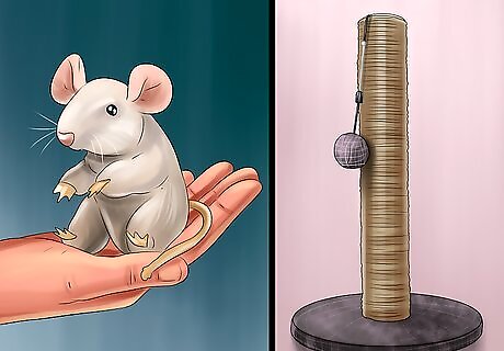 Provide your cat with stimulation. As relatively active and energetic cats, you need to provide your Oriental cat with stimulation. This is important, as cats that aren't stimulated could become antisocial or destructive. Interact with your Oriental cat as much as you can. Try to reserve play time before work, after work, and at night. Even five minutes of interaction before you leave for work will be beneficial to your cat. Consider adopting a second cat, if you don't already have one. Purchase toys like a scratching post, stuffed mice, or a fishing pole teaser toy.