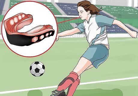Remove invisible braces to put in a mouth guard. You can generally leave invisible braces in while you play a sport. However, if you need to put in a mouth guard, you can certainly take out your braces to put in a mouth guard so you can play.