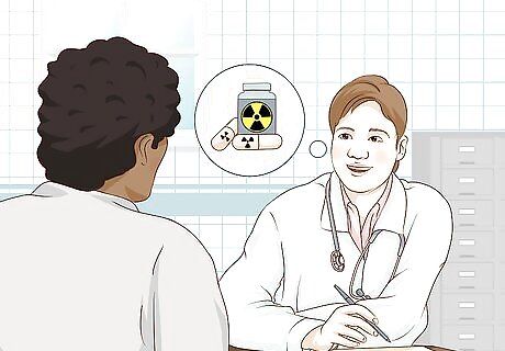 Discuss taking radioiodine with your doctor for thyroid cancer. The thyroid absorbs the majority of the iodine in your body. Therefore, if you take a radioactive iodine, it will be taken up by the thyroid, and it can destroy the cancer cells. This treatment is often used after your thyroid is removed, and the radioiodine is used to destroy what's left behind after surgery. Subsequently, radioiodine typically has to be administered in a medical setting. Before starting this treatment, you'll need to increase your levels of thyroid-stimulating hormone. If you don't have a thyroid, your doctor can have you stay off of synthetic thyroid hormone for several weeks. Alternatively, your doctor may give you injections of Thyrotropin for 2 days before beginning radioiodine. Also, your doctor will have you lower your iodine intake before beginning this treatment. That means avoiding iodized salt, dairy products, red dye #3, eggs, seafood, and soy. Because your body will give off radiation after treatment, you may need to be in isolation in the hospital for a few days, though it depends on the dose. This is in part because radioiodine can be very toxic to the people administering it if not done correctly.