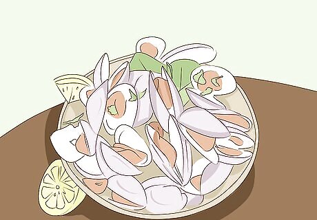 Eat food from the ocean. Both fish and shellfish are good sources of iodine, as they absorb iodine from the water. Similarly, plant-based food from the ocean, such as brown seaweed kelp, is also a good source of iodine.