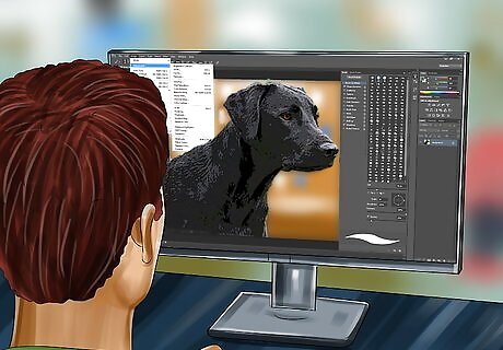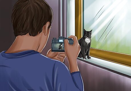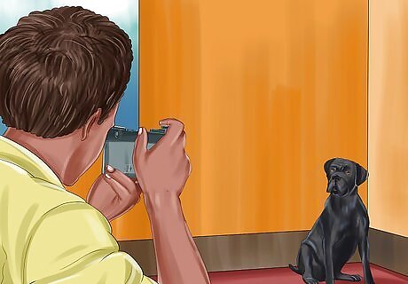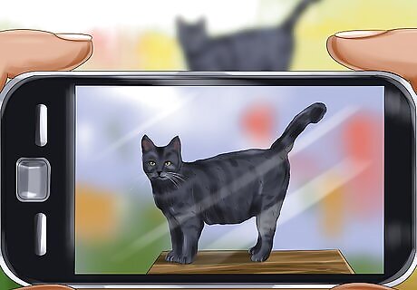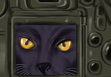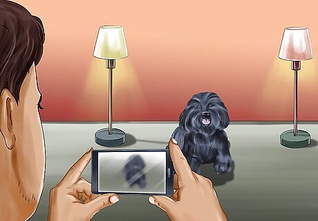 Use lamps to add additional light. For many photos, especially those taken indoors, additional light may be necessary to get a good shot. You can use lamps, flashlights, and other household staples to brighten the overall image or emphasize certain features on your pet. The direction of light will alter how a subject looks, so test your lamps at different positions to find the best result. If your camera has a black and white mode, turn it on and check if you can see your pet clearly. If not, try moving your lighting fixtures until you can.