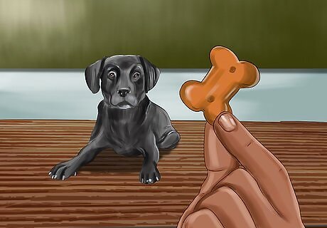 Keep treats and shiny objects on hand. Pets aren’t always as cooperative as people, so have treats on hand to keep them still, happy, and engaged. To help animals figure out where to look, use your fingers or a shiny, noticeable object to grab and direct their attention.