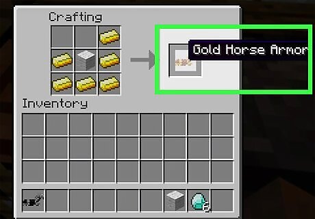 Craft horse armor. Horse armor can be crafted out of 7 leather, iron, gold, or a diamond using a crafting table. Leather can be obtained by slaughtering cows. Iron, gold and diamond must be mined to obtain. Iron and gold ore needs to be smelted in a furnace to create iron and gold bars.
