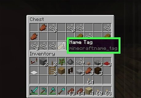 Equip the name tag. Place the name tag in your toolbar and highlight it in your inventory.