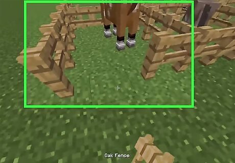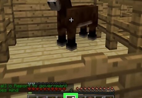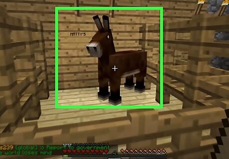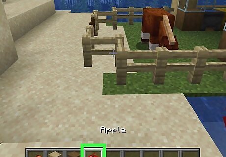Keep mounting the horse repeatedly. Each time the horse bucks you off, get back on. If it doesn't buck you off, just stay on. Eventually, hearts will appear over the horse, which indicates that the horse has been tamed. You can make it easier to tame a horse by feeding it apples. Apples are found by breaking oak leave blocks. You don't need any tools to break oak leave blocks. You can breed two tamed horses in close proximity by feeding them until hearts appear over their head. A foul will appear after a few seconds. If you breed a horse and a donkey, they will produce a mule.