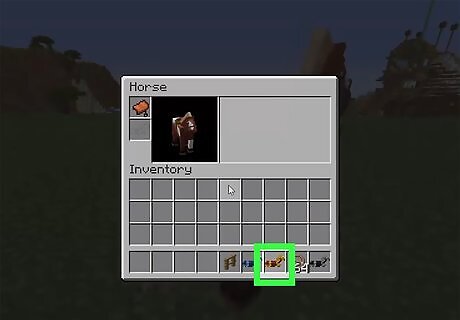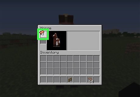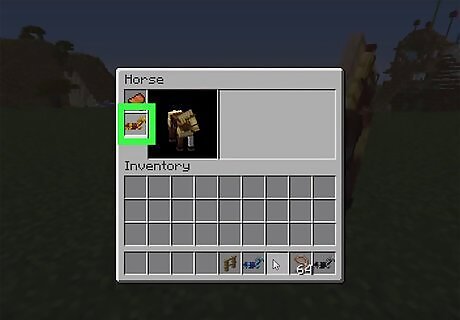 Drag the horse armor to the armor slot. The armor slot resembles the top side of a horse in the upper-left corner of the horse inventory window. Drag the horse armor from your own inventory to this slot.