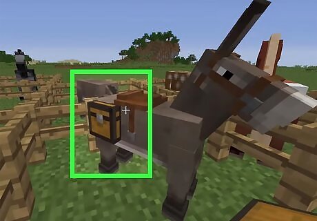 Put a chest on a mule or a donkey. Place a chest in your toolbar and select the slot with the chest to equip it. Right-click on the mule or donkey's back. That will put the chest on the mule or donkey. Chests can be crafted from 8 wood plank blocks. To access the chest, right-click while riding the mule/donkey. To remove the chest, right-click while riding the mule or donkey and there will be an icon of a chest in the armor slot. Remove that chest via shift-clicking or dragging the chest to your inventory. Chests cannot be placed on a horse.