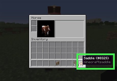 Obtain a saddle. A saddle is needed to ride a horse once it is tamed. Saddles are one of the few items that cannot be crafted. You can find a horse saddle in chests in dungeons or nether fortresses. You can also catch a saddle while fishing.