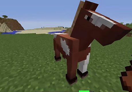 Locate a horse. Horses are found in plains biomes. Plains biomes are relatively flat, grassy biomes with few trees.