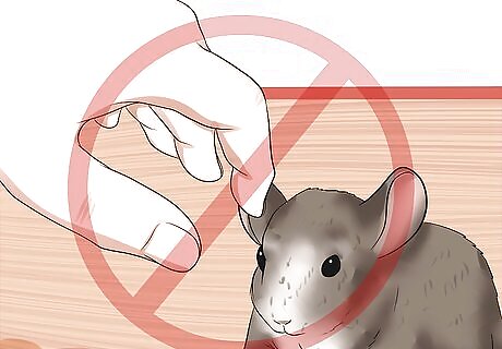 Recognize signs of stress. A stressed chinchilla requires extra patience and should not be handled until she relaxes. The most common signs of stress in a chinchilla are barking, squeaking, or trembling, as well as hiding from you when you approach. Some other signs might include: Spraying urine, or urinating all over the cage. While it is common for very young chinchillas to urinate in strange places (like in the nest, on a shelf, or directed to the outside of the cage), very stressed chinchillas also do this. Some female chinchillas even spray urine at predators, so if yours does this to you, it is a good indication that she is afraid of you and views you as a threat. Chewing hair or harming herself. Very stressed rodents (and other pets) sometimes chew their fur or otherwise harm their bodies. Some stressed chinchillas appear to never sleep, since they are always on alert and jump up at the first sound of your approach.