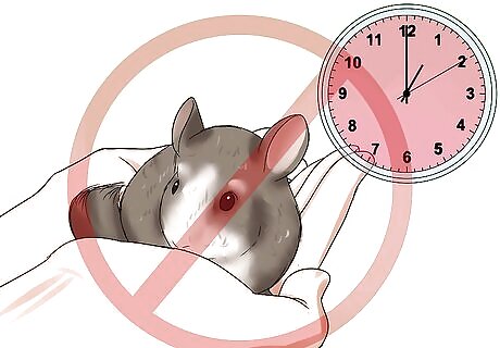 Don't hold her for long periods. Even the most friendly, tame chinchilla does not like to feel contained and does not enjoy being held for long periods. They are curious and busy creatures who want to spend time exploring, not sitting still. Pay attention to her cues. Put her down immediately when she starts to squirm, squeak, or otherwise seems distraught or anxious. Aim to hold her a couple of times a day for short periods of time, rather than trying to hold her for long periods. Don't introduce her to other people for a few months after you've tamed her, and then do so gradually and with patience, letting her take the lead by sniffing the person's hand and choosing if she wants to climb onto their open palm.