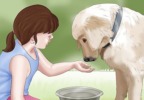 Perform a volunteer activity with your child. Volunteering can be a great way to instill a sense of giving in your child. It also makes the idea of helping more than an idea but a practice that they can continue as they get older. A variety of volunteer activities probably exist in your community that you can perform with your child to demonstrate how they can help others. Visit or call a community center, library, school, church, or other local non-profit organization to participate in a charity event or fundraising activity. Some organizations may have special activities for children. Make sure to call ahead to find out if it's the right fit. Try to find something that aligns with your child's interests. If they like animals, see if there are opportunities at a local animal shelter. If they like to play games, a nursing home where volunteers entertain the elderly may be a great choice.