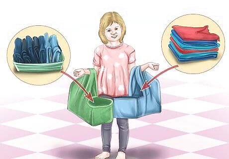Give them household tasks to do. Many parents give their children chores to do and this can be a great way to teach them to be helpful. They can be taught that they are part of the family unit and the value of everyone chipping in to help. Start a chore chart. This way a child can learn to do helpful tasks like taking out the trash or washing the dishes and slowly get rewarded in order to build up good behaviors. It is best if the rewards are gradual so they have to persistently help in order to build up good habits.